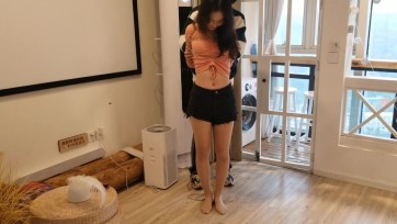 【一绳所爱】女孩五花大绑跪在茶几上,双手反吊流口水
