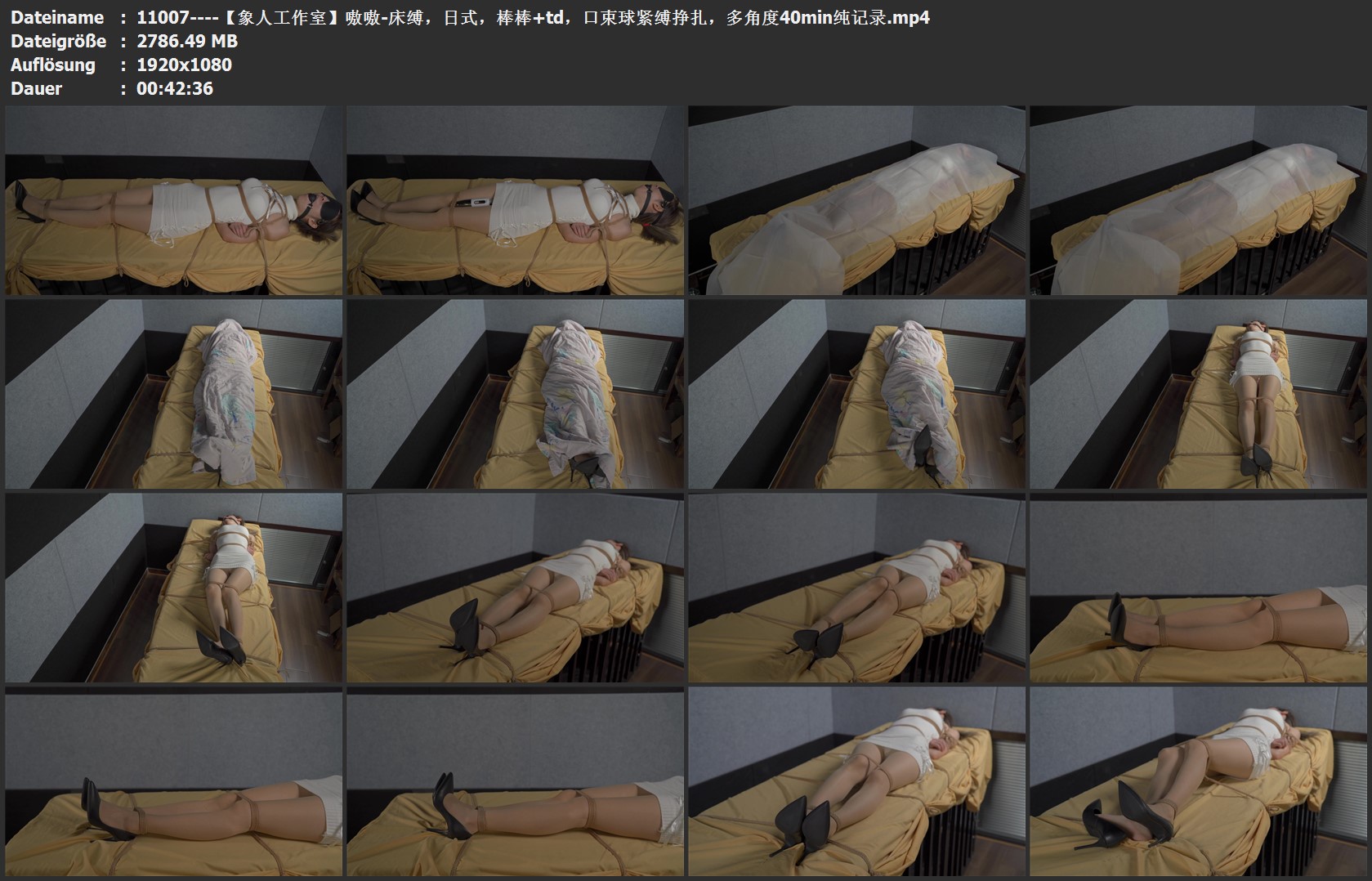 【象人工作室】嗷嗷-床缚,日式,棒棒+td,口束球紧缚挣扎,多角度40min纯记录