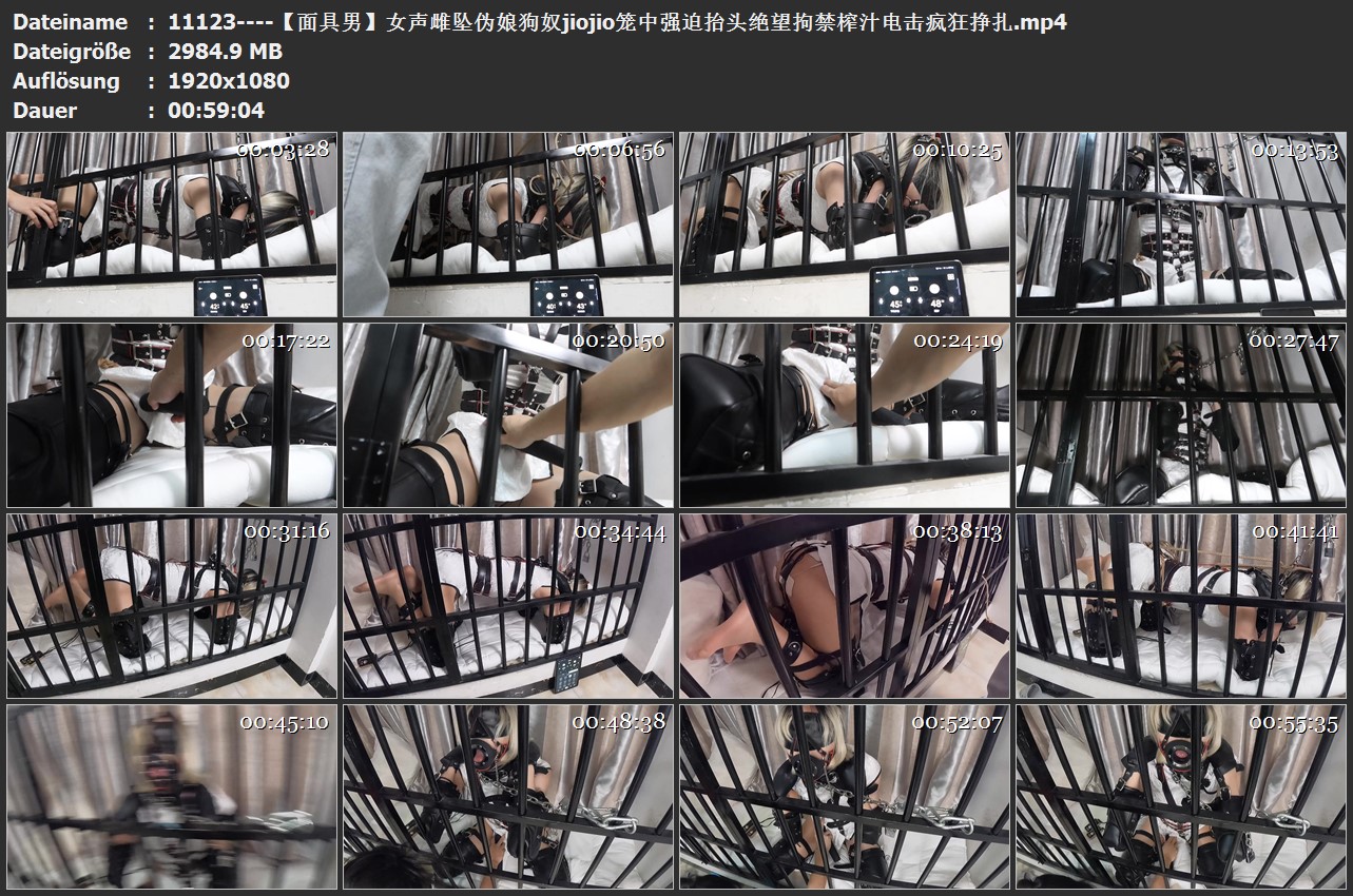 【面具男】女声雌坠伪娘狗奴jiojio笼中强迫抬头绝望拘禁榨汁电击疯狂挣扎。(给锁上K9套装,并且加了一根连接马具型口塞的绳子,让他只能抬头,做个真正的母狗,以这样的姿势关个大半...