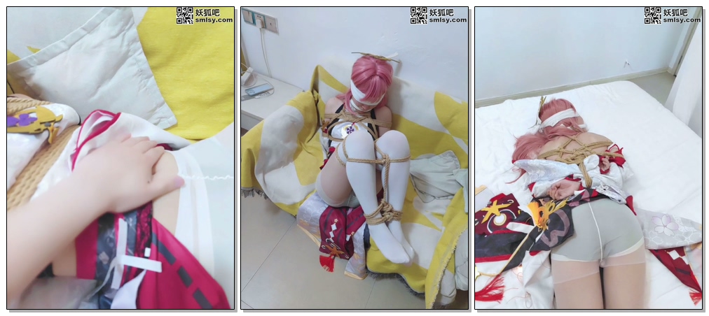 八重神子被后手缚并腿绑在沙发上,挠脚心,打屁股,抚摸xiong部,只能绝望扭动身体,随后被搬到床上,带上td折磨,像虫子一样扭动着身体,打pp,最后用棒棒强制gc,猛烈挣扎,看来是玩生气了,扭屁股抗议
