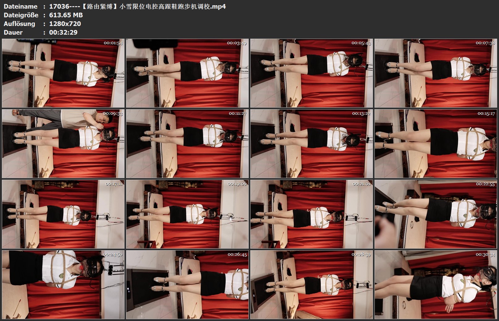 小雪继上次体验完限位电控罚站后,这次又来体验了难度更高的电控跑步机,这次把电击的力度调到了100,跑步机一启动小雪就被电的嗷嗷叫,由于她叫的太欢了绳师给她戴上了大号口球,小雪一直没有掌握好平衡,在跑步机上电击就没停过,最后流了一身的口水屁股都给电麻了,还一直在穿高跟鞋跑步,香汗淋漓