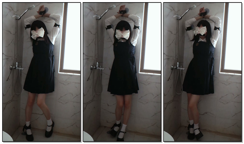 这次是被吸盘手脚拷固定在浴室里的墙上,双手手臂和手腕被三个点束缚在头顶,说实话在这种姿势下有点难使力,而且手臂很快就感觉到酸疼了。因为手铐不够了所以脚腕没有被完全固定起来,一开始还有点庆幸,但没想到这个吊儿郎当的小东西居然能让我心生烦躁,因为在挣扎的时候下面那个吸盘老是会吸到地上,有时吸得重有时吸得轻,又因为是蒙着眼睛被绑,所以根本不知道什么时候右脚会被吸在地上,虽然被吸住了也不难挣脱,但就是会被弄得有点烦躁...