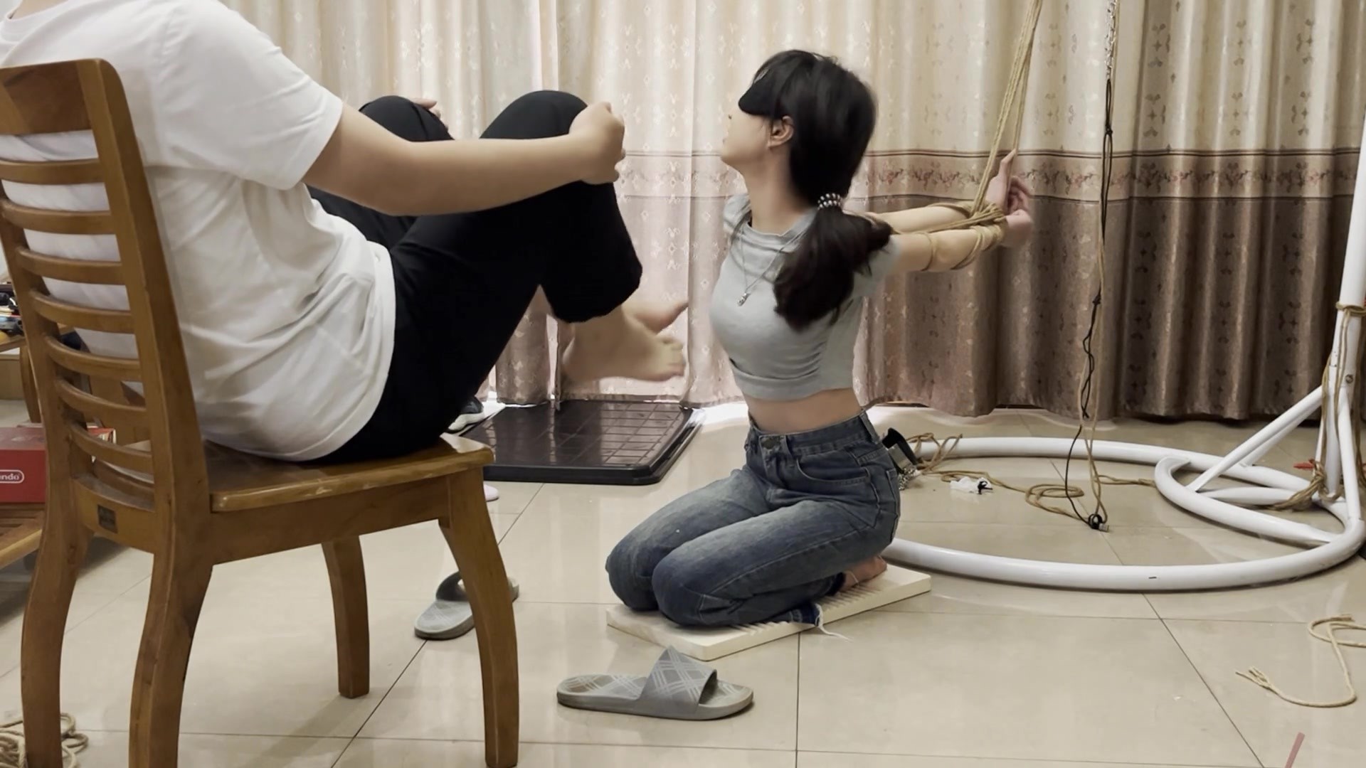 【缚予】线下真实调教之皮皮反手吊缚跪坐搓衣板踩踏惩罚 ...