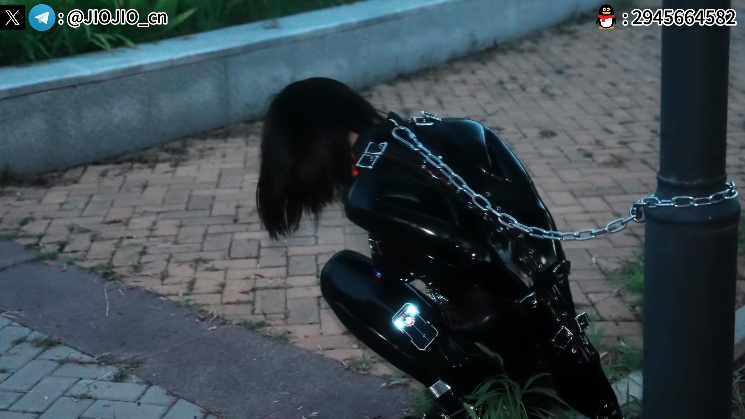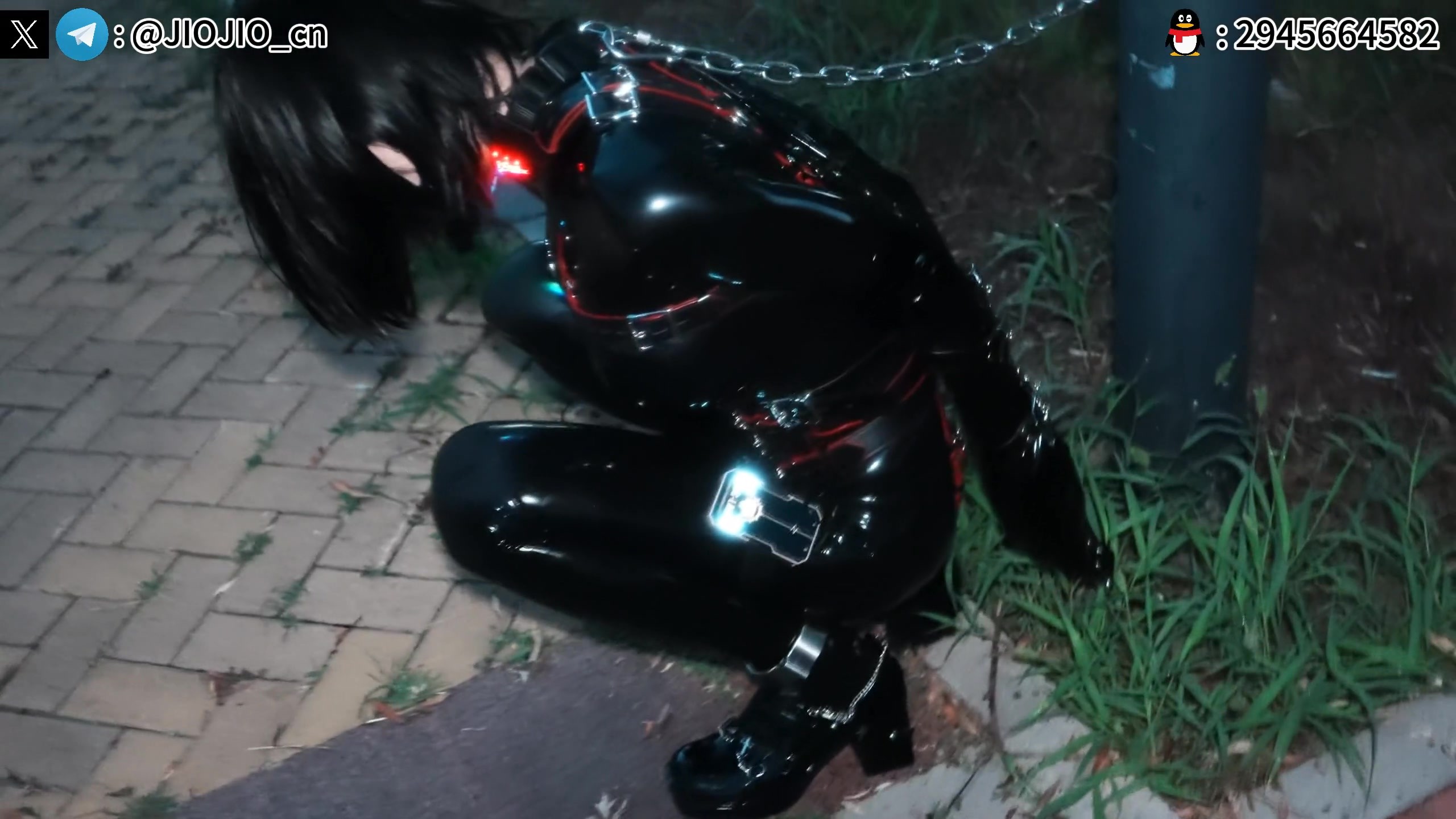 【JIOJIO】乳胶 の母畜性奴隶9(户外篇3)凌晨发现单手套乳胶性奴!上前抓住后项圈锁链牵引 拴在电线杆旁 强制电击+训练器震动强制GC