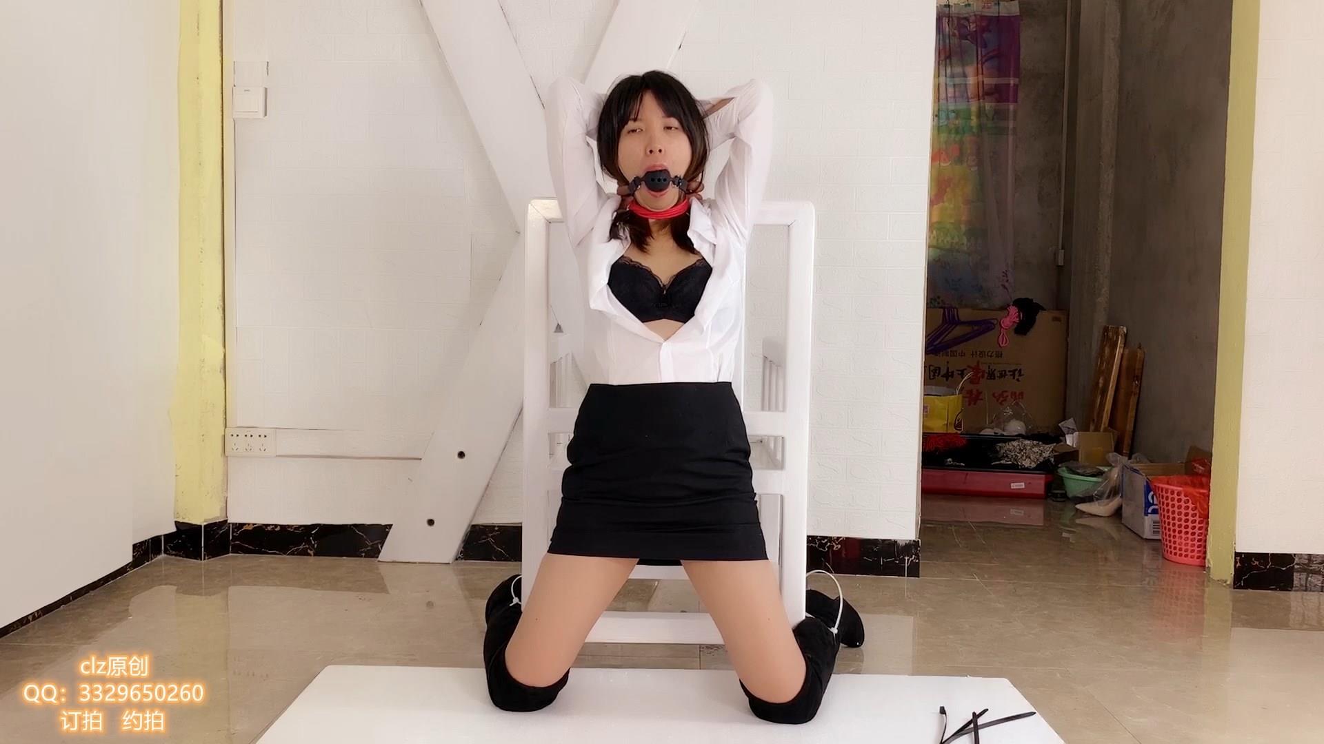 "灵粒性感黑色长靴跪缚捆绑放置, 第一段是用轧带双手举高固定在椅子上,然后脖子捆上细红绳链接到椅子这样头部就动不了了 脚是双脚分开用轧带固定在桌角 合并不了。带上大号口球任由其挣扎! 中途把上衣扣子解开露出黑色文胸 第二段则是加高难度,首先脖子的绳子更紧,双手用一根横杠固定拉高绑好手碰不到横杠,并且手部的绳子和脖子是相连的,这样手一动就回牵制到脖子的绳子 会达到zhixi效果,这个绑法很好玩,再加上鞭打,灵粒是一动不敢动,口球也塞着叫不出声。。很好玩。 这部片其实不是很严厉但是整部片连续跪了 40分钟都没有起身,对于灵粒来说是一个难度,其次就是绑法上因为连着脖子也非常难受!"