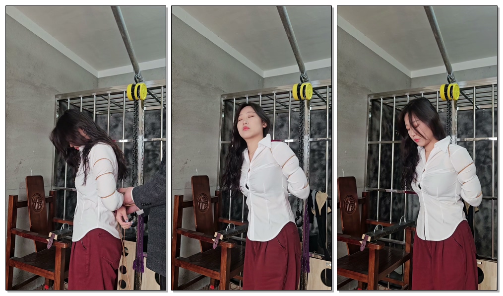 【缚心室】真空上阵,油光灰丝小美女直臂紧缚折磨,吊缚+驷马一