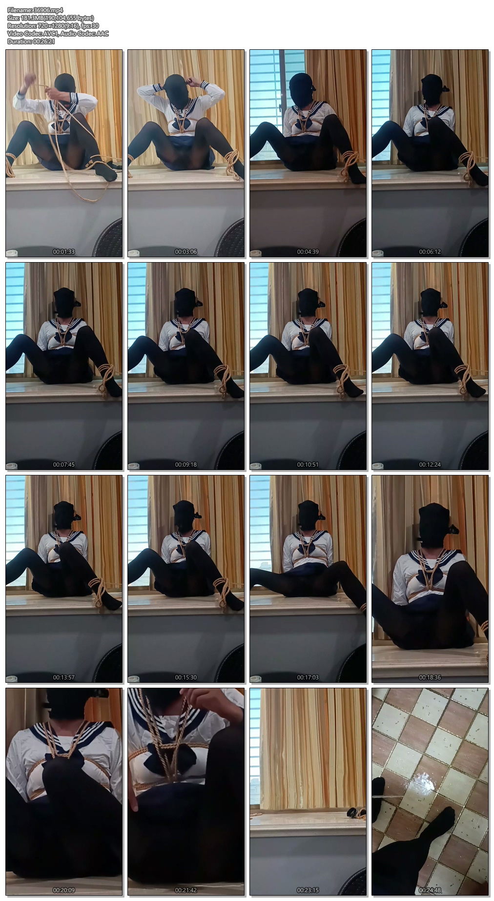 酒店窗台自缚失禁。很久之前拍摄的一直没时间。在酒店的窗台,JK分腿自缚。内裤套头