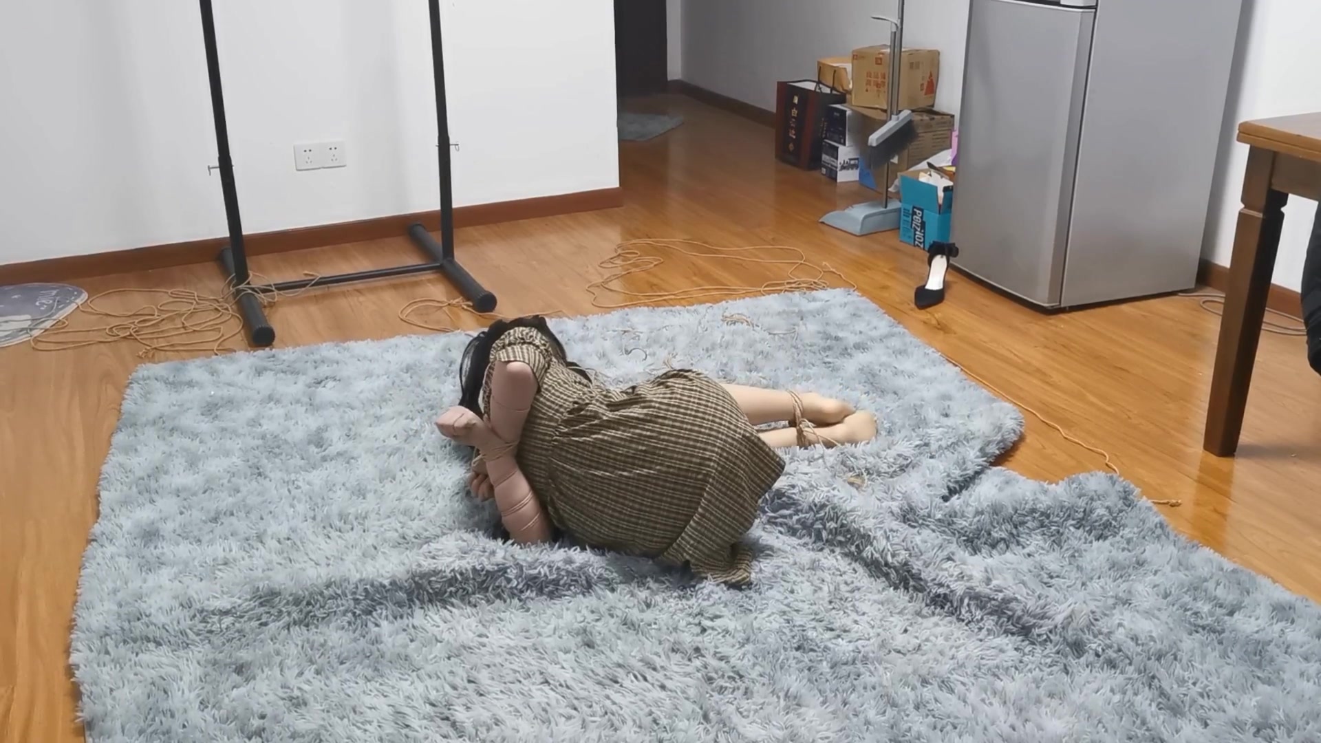 挑战内容:诗诗老师在双手被五花大绑的情况下,可以在不离开地毯范围的情况下,任意反抗挣扎,避免被奥特曼,绑成驷马。如果最终成功,将被奥特曼挠痒痒1分钟。挑战开始之前,先绑一个极限驷马。拉拉筋。